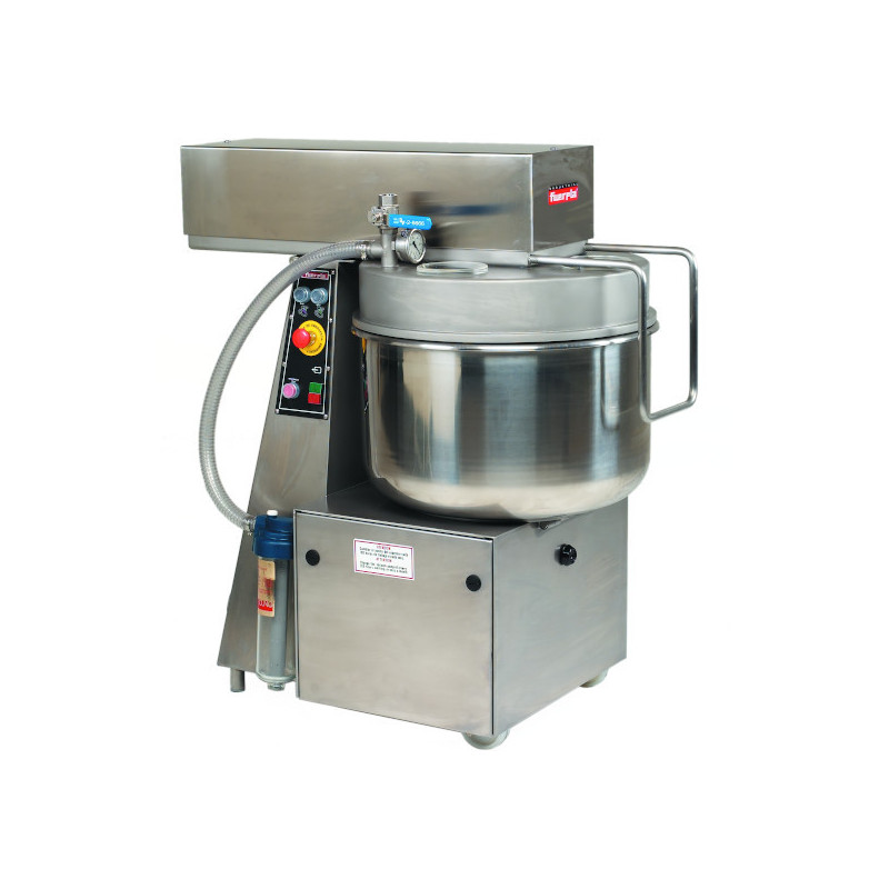 La amasadora al vacío AO-85 ofrece un sistema avanzado de amasado al vacío, especialmente diseñado para la extracción de aire intermolecular en productos alimentarios. Con una capacidad de 85 litros, este equipo incluye una potente bomba de vacío de 21m³/h que garantiza un producto sin burbujas y mejora la densidad y consistencia de la masa. Su uso reduce significativamente el volumen de masa y permite fijar el color natural, acelera el secado, y minimiza la oxidación en los productos acabados. La AO-85 está fabricada en acero inoxidable y ofrece un sistema robusto y duradero, ideal para la producción de alimentos de alta calidad, optimizando tanto la eficiencia como la calidad del producto final.