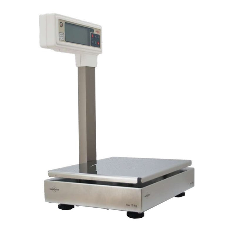 La Serie BMX0 Modelo Check-Out Colgante es una báscula digital con visualizador de peso LCD y un segundo visualizador del lado del cliente. Incluye un teclado multifunciones de 7 teclas, función Peso-Tara y Cuenta piezas, fijación de tara, destare automático y puerto serie RS 232 bidireccional. También ofrece opción de conexión a repetidor de peso (BM1000), múltiples protocolos de comunicaciones, 2 formatos pre-configurados de ticket y 4 de etiquetas, todo en una construcción de acero inoxidable con plato de dimensiones 300x55 mm.