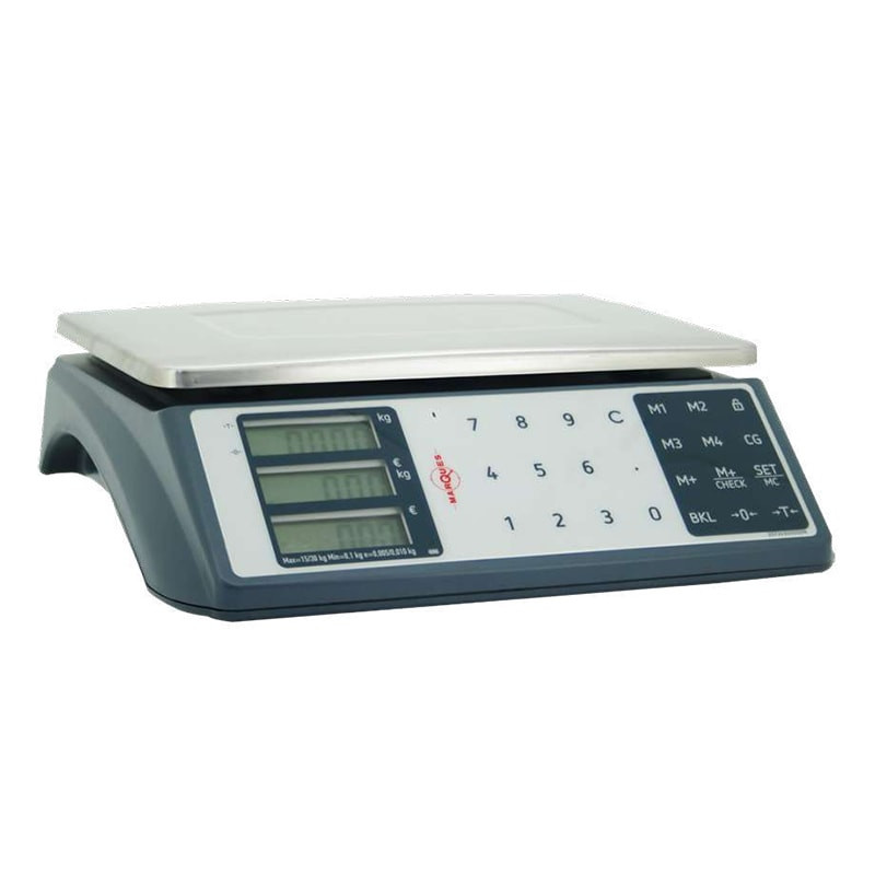 La Serie BMX0 Modelo Check-Out es una balanza electrónica de alta funcionalidad diseñada para comercios que necesitan precisión y rapidez. Esta balanza cuenta con un visualizador de peso LCD con 6 dígitos de siete segmentos y un segundo visualizador en el lado del cliente. Incluye un teclado multifunción de 7 teclas que proporciona una variedad de funciones, como Peso-Tara y Cuenta piezas. También ofrece la posibilidad de fijación de tara y destare automático. Además, cuenta con 2 puertos serie RS 232 bidireccionales, opción de conexión a repetidor de peso, múltiples protocolos de comunicación, formatos pre-configurados de ticket y etiquetas, y una construcción en acero inoxidable con un plato de dimensiones 335x245 mm.
