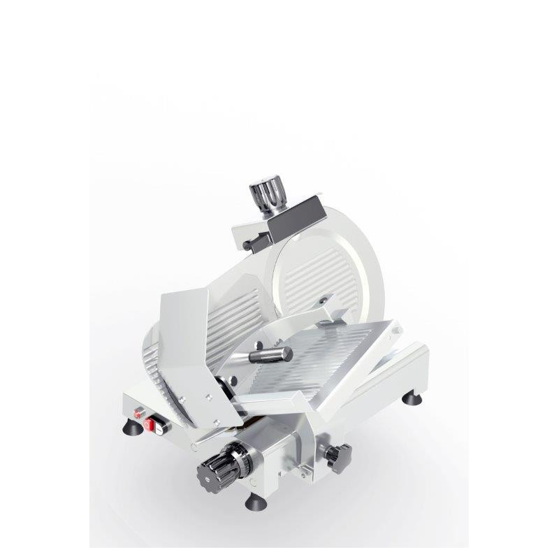 La cortadora de fiambre 350 GLX de OMEGA es una máquina profesional diseñada para ofrecer cortes precisos y uniformes de fiambres y otros alimentos. Equipada con una cuchilla de 350 mm de diámetro de la serie Slayer Blades, esta cortadora garantiza un corte eficiente y limpio. Fabricada en aluminio anticorrosivo anodizado, la cortadora es resistente y adecuada para uso intensivo en entornos comerciales. Incorpora un afilador integrado para mantener la cuchilla afilada y utiliza una transmisión por engranajes dentados y sinfín lubricado de acero para un funcionamiento suave y duradero. Con un recorrido del carro de 340 mm y capacidad para cortes de hasta 23 mm de espesor, esta máquina ofrece versatilidad y facilidad de uso.