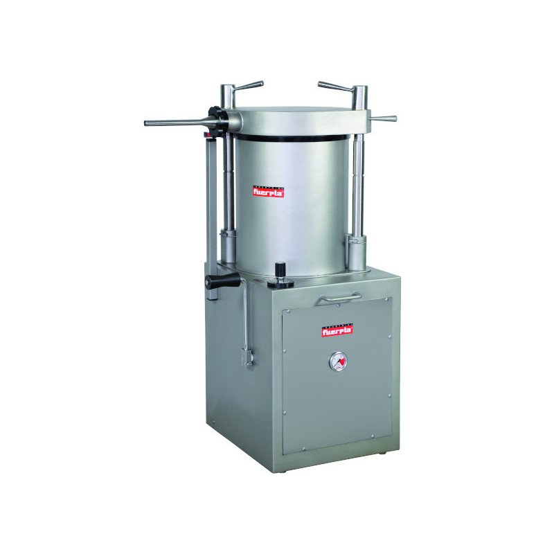 La EV-50 CE es la embutidora hidráulica de alta capacidad que cumple con los requisitos de calidad y seguridad para producciones industriales. Con una capacidad de 50 litros, está diseñada para entornos de alta demanda y garantiza una operación continua sin comprometer la calidad del producto final. Su fabricación en acero inoxidable asegura resistencia y durabilidad, ideal para largas jornadas de trabajo en entornos exigentes. Este modelo cumple con la normativa EN-12463, lo que incluye características avanzadas como un embudo de salida más largo, detector de tapa abierta que proporciona mayor seguridad operativa, y un manómetro que permite una visualización precisa de la presión durante el proceso. La EV-50 CE también cuenta con un botón de paro/marcha, un sistema de doble pulsador que facilita la limpieza sin detener la producción, y un sistema de bloqueo de cilindro de seguridad, que previene accidentes y asegura un entorno de trabajo seguro. Además, su sistema de desmontaje permite realizar una limpieza rápida y completa, ahorrando tiempo en el mantenimiento. La EV-50 CE es la opción ideal para empresas que buscan eficiencia, seguridad y máxima calidad en sus productos.
