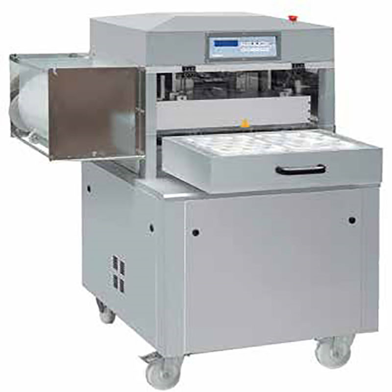 La Termoselladora SPP-4.3 de TEPRO es una máquina diseñada para el recorte y arrastre automático de film en formato 1/1 gastronorm, ideal para envasado de bandejas de gran tamaño. Esta termoselladora es la más grande de la gama de TEPRO, con un cajón amplio que permite el uso de bandejas de hasta 560 x 365 x 100 mm. La profundidad de los envases puede ajustarse fácilmente mediante plaquitas de llenado extraíbles. Incluye rebobinado y corte de film automático, así como una fotocélula para el centrado de impresión del film, lo que asegura un envasado preciso y eficiente.