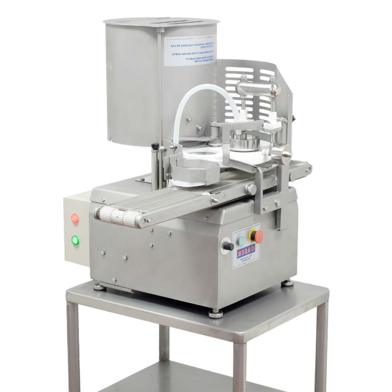 Formadora de hamburguesas semiautomática con capacidad de 10 kg de masa, ideal para producciones de hasta 20 unidades por minuto. Permite ajustar el grosor y diámetro para distintas necesidades de producción.