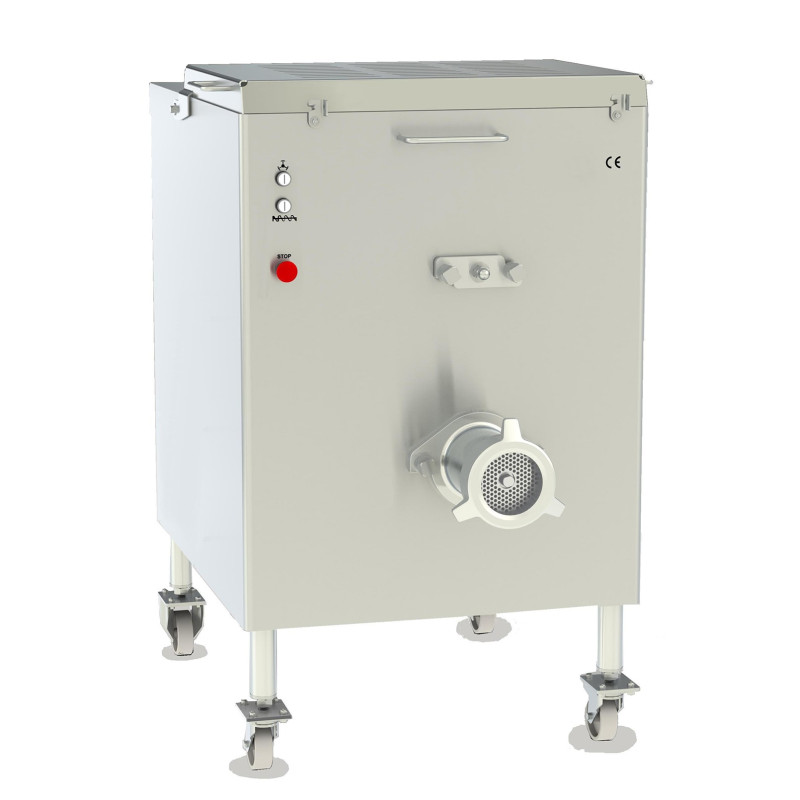 Picadora integrada de acero inoxidable 18/8, motor monofásico 230V.o trifásica 230/400V con ventilación forzada periférica, manteniendo una temperatura baja de funcionamiento.